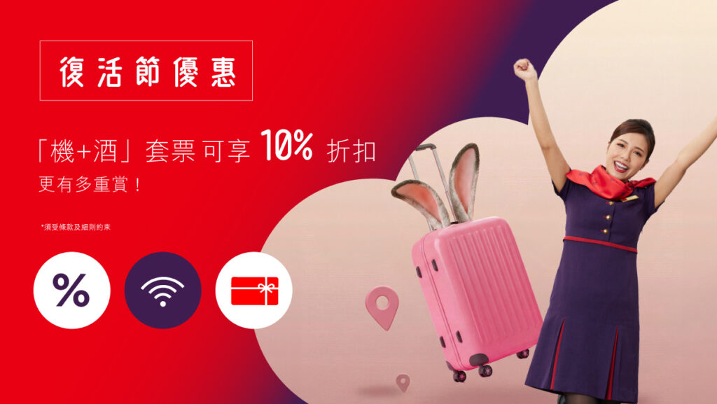 精選航點「機+酒」套票可享10%折扣,仲追加 [3] 重禮遇