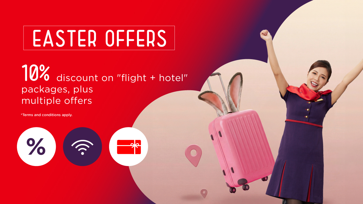 Book a "Flight + Hotel" package or "Flight" (calculated as a single transaction) through HKA Holidays and enter the promotional code to enjoy upgrade offers and instant discounts!