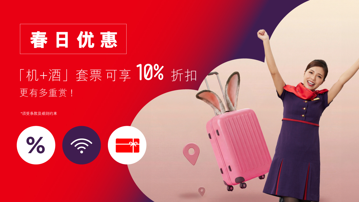 精选航点「机+酒」套票可享10%折扣,仲追加 [3] 重礼遇
